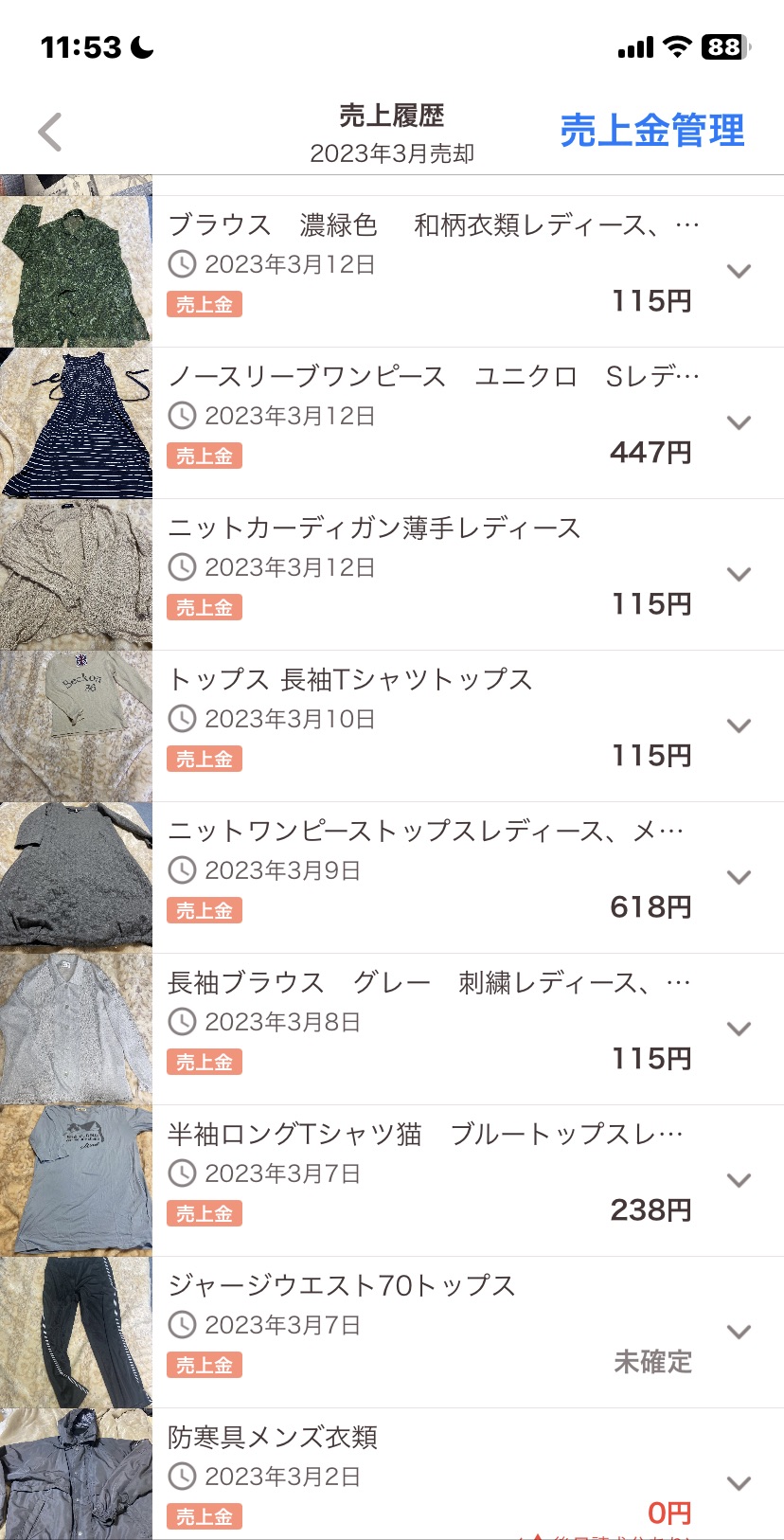 フリマ3月18日現在の売り上げ