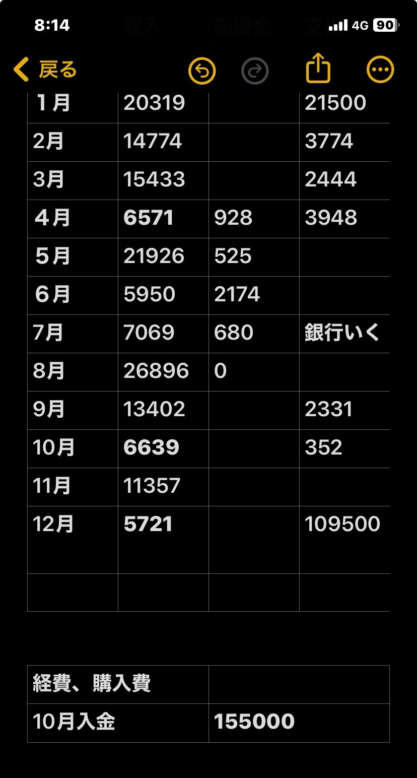 保存した写真 月、収入、支出、利益の順で書いてます!