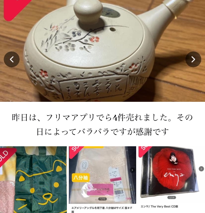 なぜか1日おきに売れるような感じでフリマの不思議さを感じています。